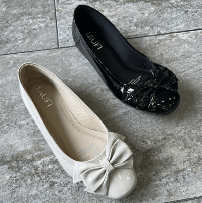 Flat con material charol con lazo encima