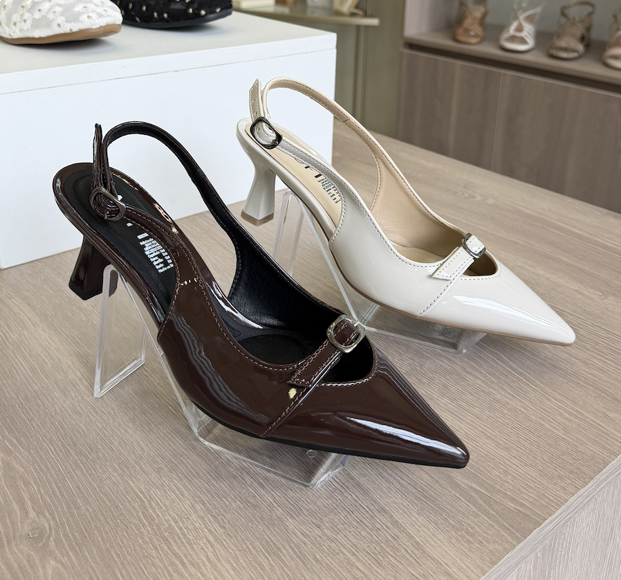 Zapato de silueta de punta fina con taco fino tamaño medio , capellada básica, stiletto con hebilla encima